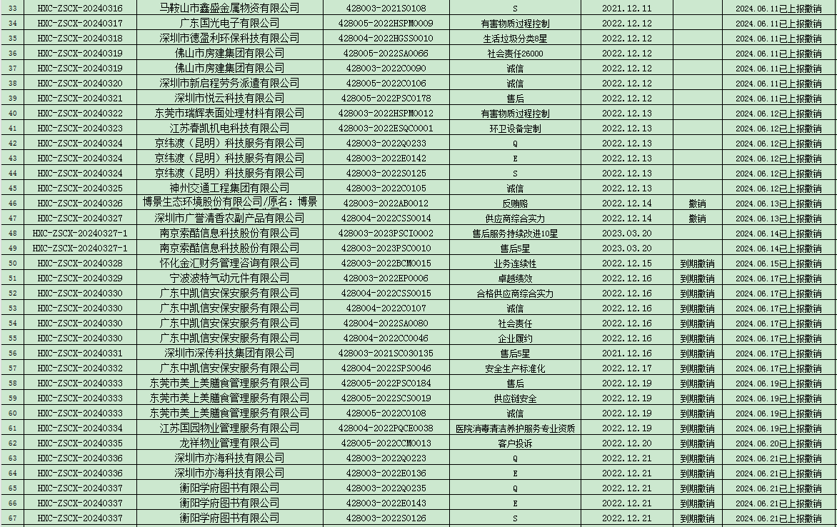 您的位置: 首頁 新聞中心 公司公告 撤銷公告 2024年06月份認證證書撤銷名單